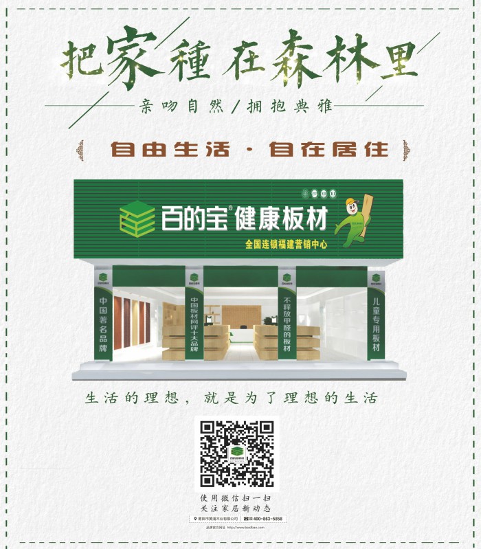 百的寶板材以卓越的品質,讓一塊塊板材,成為對自然最虔誠的朝拜。清新、健康、環保、舒適這是百的寶板材為您打造的居住空間,也是屬于你我,共同的家。